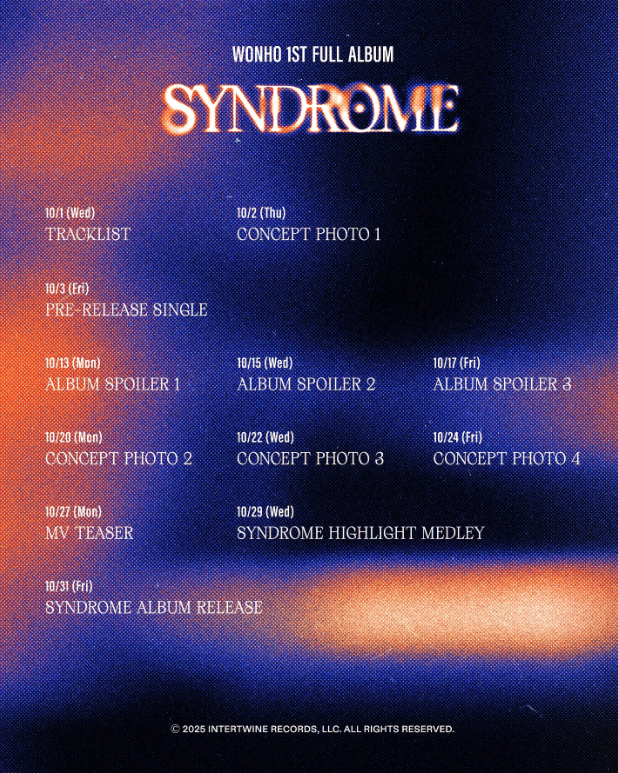 WONHO is officially making his highly-anticipated comeback with his 1st full-length album titled [SYNDROME], releasing on October 31, 2025. This marks a major milestone in his solo career, as fans have been waiting patiently for a full studio album since his debut. The title track, “if you wanna,” is set to drop alongside the music video and full album release, giving fans a dramatic and emotional experience just in time for the end of October.