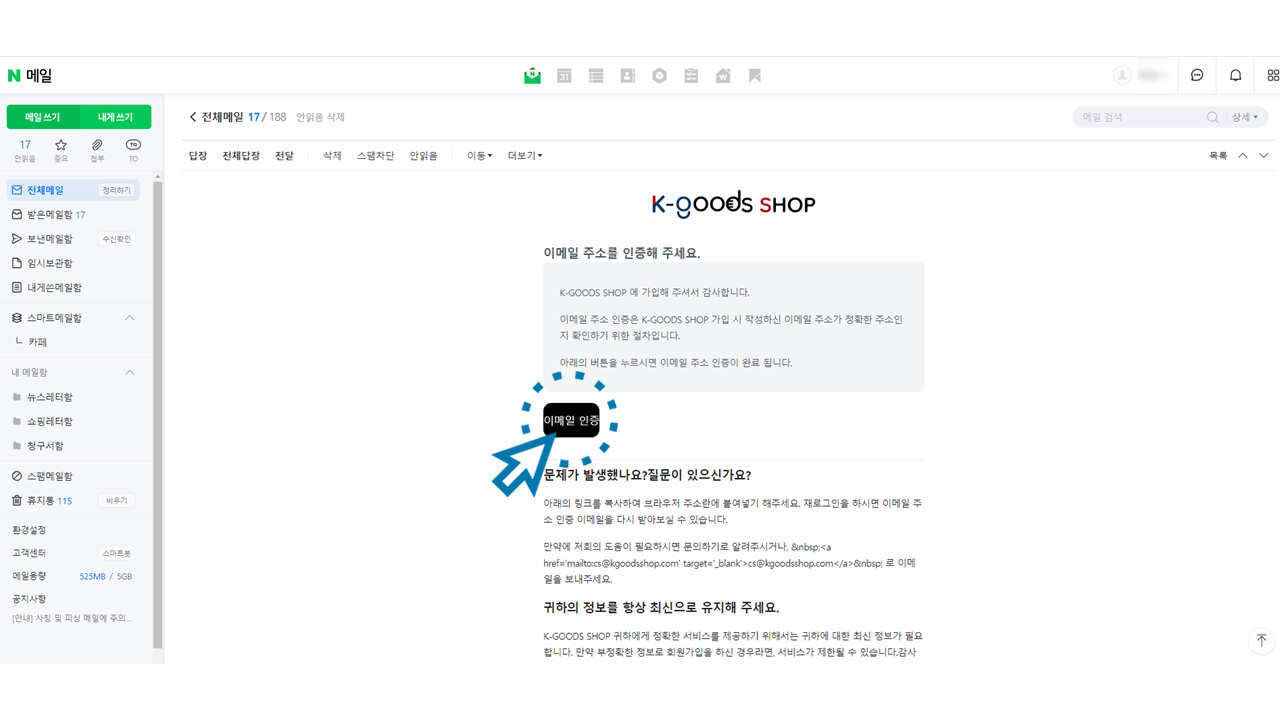 9. 받은편지함에서 K-GoodsShop에서 보낸 이메일 확인