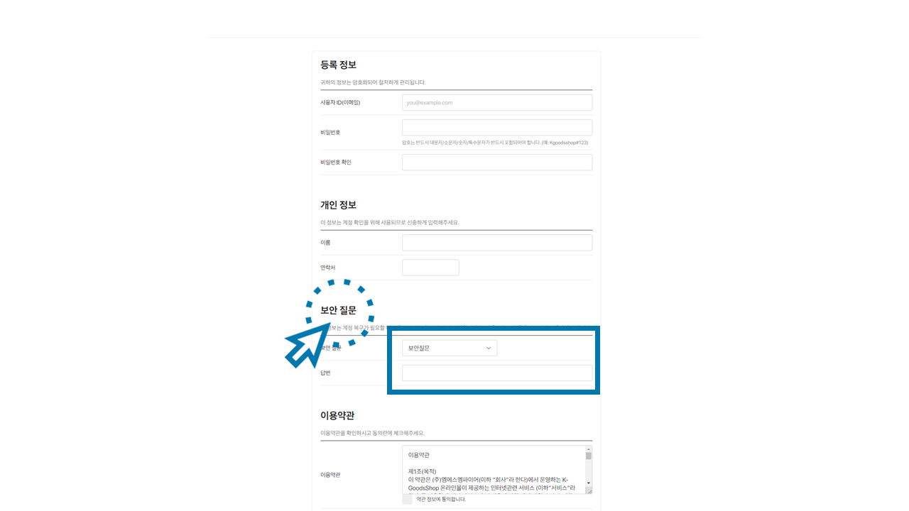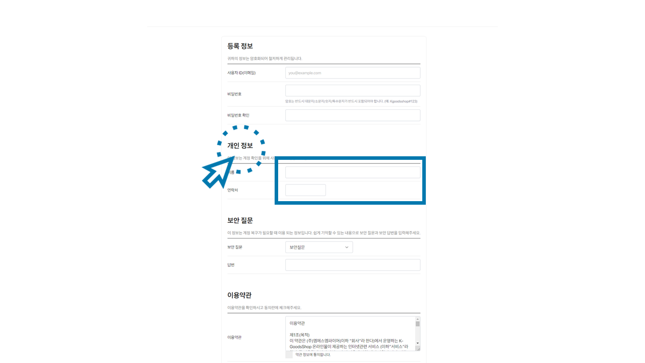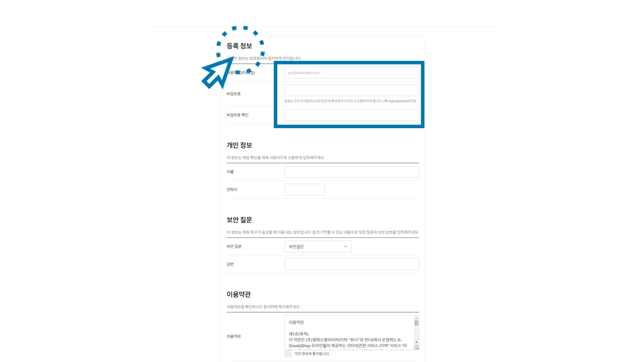 (해당 정보는 K-GoodsShop 계정 정보로 이용됩니다.)